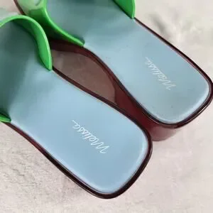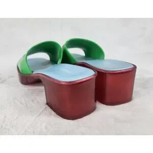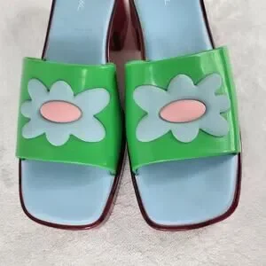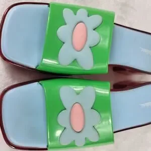 Lazy Oaf x Melissa Y2k Platform Slides Green Flower Sandals Chunky Heel Retro | Size 6