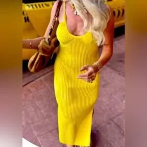 NWOT Revolve x House of Harlow 1960 Lemon Striped Ribbed Beaded Midi Dress small