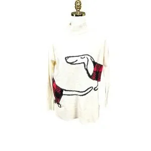 LOFT Womens Ivory Dachshund Buffalo Plaid Mock Neck Sweater Small Dog Graphic