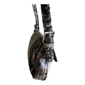 Giannini Brown Black Snake Skin Small Shoulder Bag With Magnetic Snap Closure