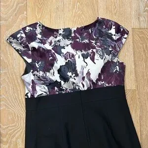 Pretty black and white Ann Taylor sheath dress with a purple floral print. Nicely lined with a back zipper closure. Excellent preloved condition!