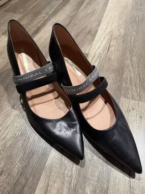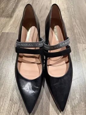 Hannibal Laguna Black Pointed Heels with Branded Elastic Straps