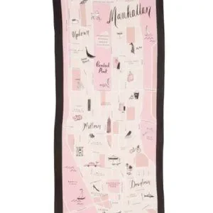 A soft scarf featuring a stylized map of Manhattan lends the way to playfully chic style.