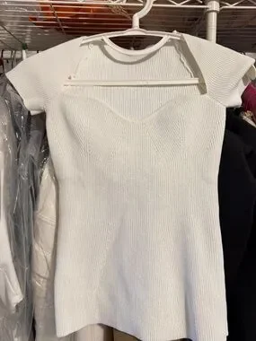 This elegant ribbed top is perfect for any occasion. Its sleek design and comfortable fit make it a must-have in your wardrobe. Unbreanded newer worn no tags