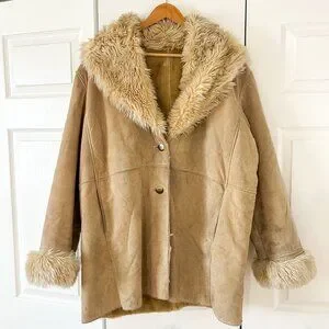 Wilsons Leather Tan Genuine Leather Faux Shearling Coat Womens Size XL