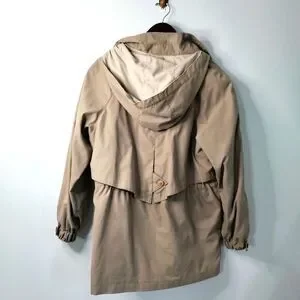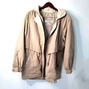 IZZI Outerwear Women M Tan Coat/Jacket Full Zip Detachable Hood Zip Button Close