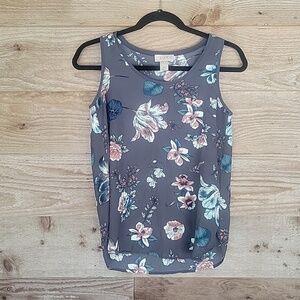Loft XSmall Petite Gray Floral Sleeveless Top