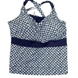 Lands End Tankini Top Womens 22W greem Geometric Floral Modest Beach Swimwear
