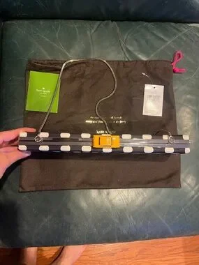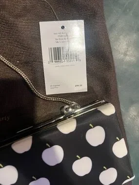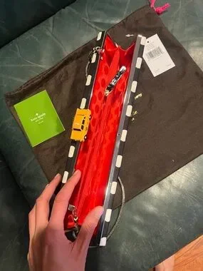 kate spade Black and White Apple Print Clutch with Yellow Taxi Clasp