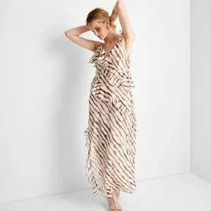 Add a statement piece to your casual-chic wardrobe with this Ruffle Ankle-Length Dress from Future Collective™ with Jenee Naylor. Crafted from lightweight recycled polyester fabric with full lining, this sleeveless ankle-length dress features a V-neckline accented with ruffles on the front and back. The dress also features a side slit, and you can add your favorite shoes and accessories to complete the look.