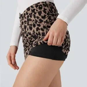 HALARA Leopard Print Ruched Mini Skirt in Beige and Black