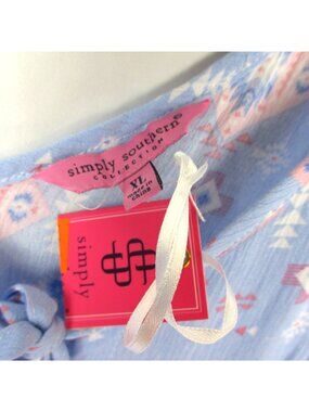 Simply Southern Blue Aztec Print Cotton Maxi Dress Adjustable Straps XL Summer