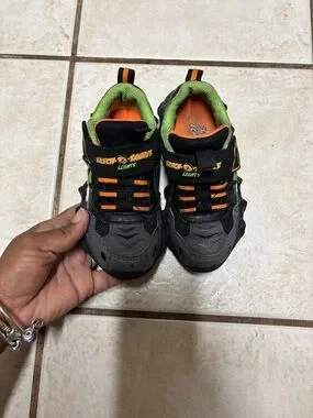 Fits toddler boys 11c still lights up one flashes more than the other one