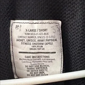 US Army APFU PT Jacket Black Yellow X-large Short Military Physical Fitness