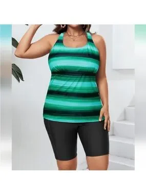 AQUA EVE PLUS SIZE 2 Piece Criss Cross Tummy Control Tankini Swimsuit