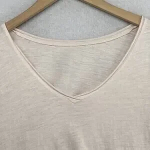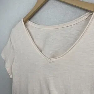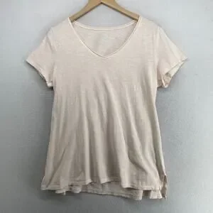 EILEEN FISHER Top M Slub Organic Cotton Jersey V-Neck Short Sleeve Light Pink