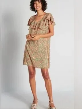 NWT Modcloth Molly Bracken Poised For Poppies Floral Ruffle Short Sleeve Dress
