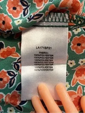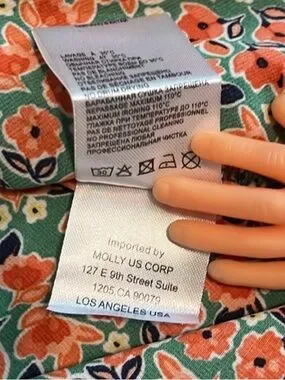 Flutter your way into warmer days in effortlessly boho-chic style with this Molly Bracken dress. Made with a lightweight, flowing green-hued woven fabric, this mini dress boasts a vintage inspired print of miniature flowers all over, including red and dark navy blue poppies and even tinier white and yellow daisies. With a relaxed a-line fit, the tiered ruffles at the V-neck line and short flutter sleeves add a feminine sensibility to this floral printed sundress. Unlined. Very comfortable, breezy fabric. Great for travel-lightweight & packable.