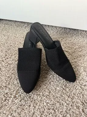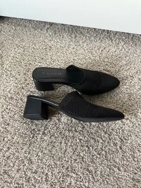 90’s minimal Tahari Black Knit Pointed Mule with Low Block Heel