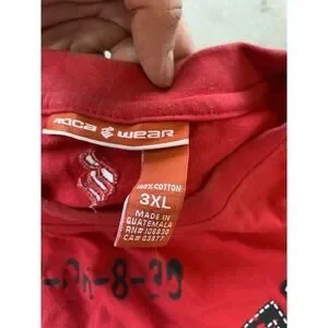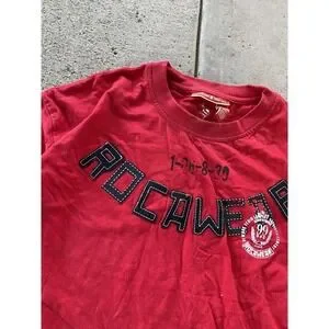 Rocawear mens red graphic shirt in tag size 3XL, crafted from 100% cotton with a classic crew neck and short sleeves for casual all-season streetwear.