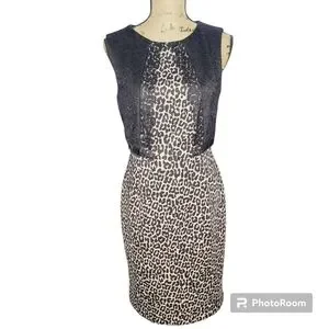 Karl Lagerfeld Paris Mob Wife Leopard Black Lace Dress size 6