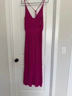 White House Black Market Fuchsia Draped V-Neck Maxi Dress