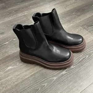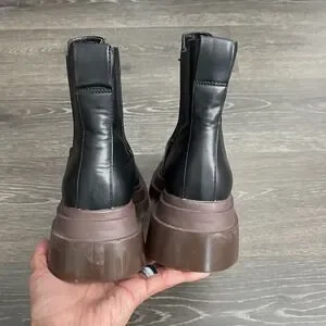 URBAN OUTFITTERS Black Chelsea Faux Leather Combat Platform Chunky Boots 9 40
