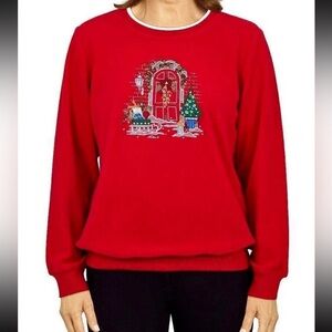 VTG Alfred Dunner Sweatshirt Crewneck Festive Red Green Christmas Embroidered XL