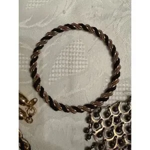 The earrings are a brass beaded chandelier look, popular in the 70’s, common in the Boho Tribal styles. They’re designed to develop a natural patina over time.