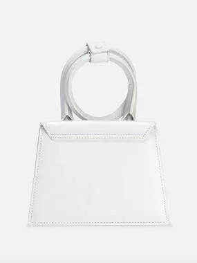 Featuring a distinctive elongated top handle with a snap-button fastening, the white Noued bag is a new-season take on Jacquemus' iconic Chiquito design. This smooth leather style has a magnetic closure, logo-letter hardware, and an interior compartment to hold small essentials.