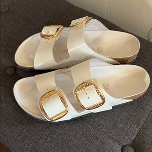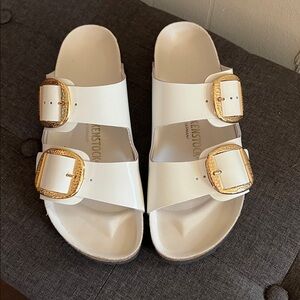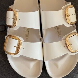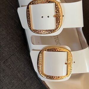 Birkenstock bid buckle Cream Sandals with Gold Buckles