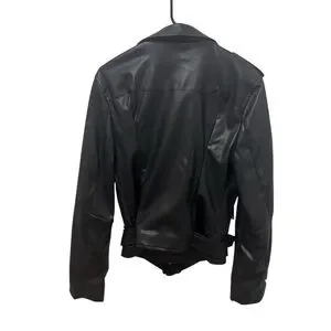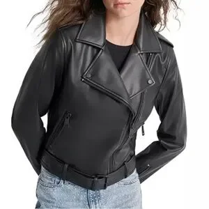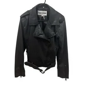 DKNY Jeans Faux-Leather Belted-Hem Moto Jacket Size Large