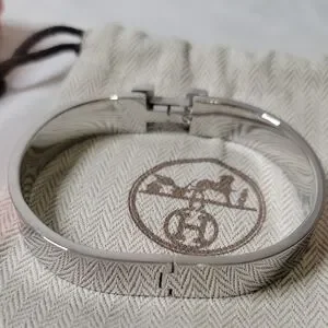 Hermes Pink Enamel H Clic Bracelet with Silver Hardware