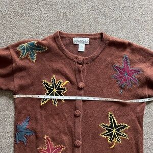 Vintage Alexa Grace Brown Leaves Cardigan Sweater Fall Autumn Grannycore Size S