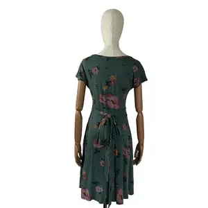 Toad and Co Floral Green Faux Wrap with Tie Waist Dress Size XS