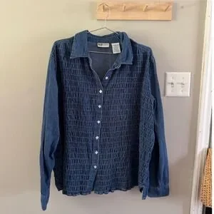 Vintage denim long-sleeve top with smocking details on the front. A simple piece but will go with a lot!