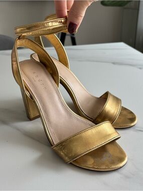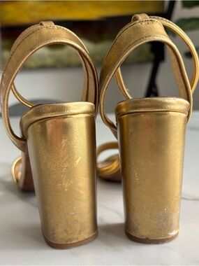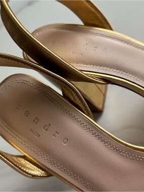 Sandro Metallic Gold Ankle-Strap Block Heel Sandals Sz 37