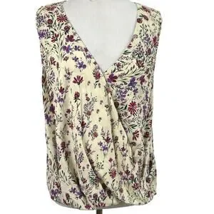 Velvet Graham Spencer Floral Sleeveless Draped Blouse Women Medium