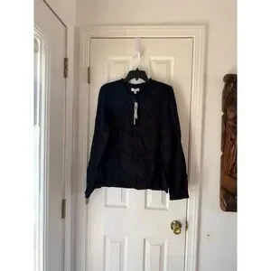 KOKO + MASON Black Eyelet Embroidered Button Front Long Sleeve Shirt XL