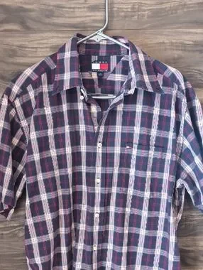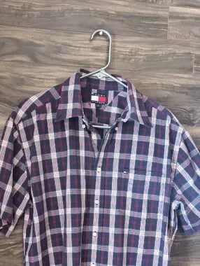 Vintage Tommy Hilfiger Plaid Short Sleeve Button Down Shirt - Large