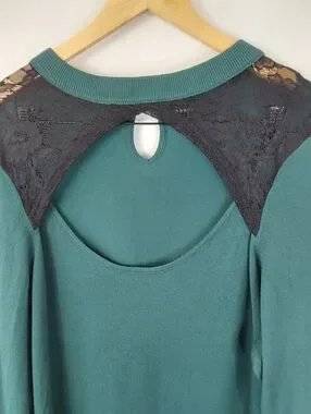 Torrid Green Pullover Lace Keyhole Cutout Knit Sweater