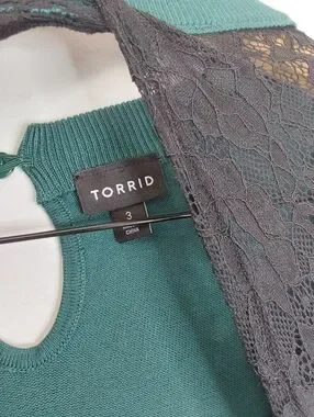 Torrid Green Pullover Lace Keyhole Cutout Knit Sweater Size 3x.