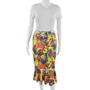 Zara Womens Multi-Color Floral Trumpet Midi Skirt 100% Polyester Size S