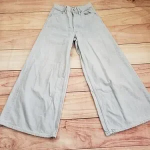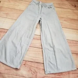 We The Free Jeans Womens 24 Light Wash Wide Leg High Rise Button Fly Distressed