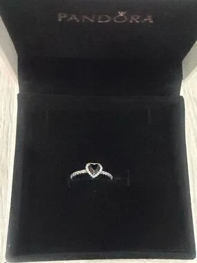 Pandora Sterling Silver Black Heart Ring in case size 7