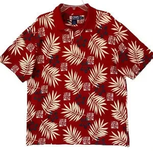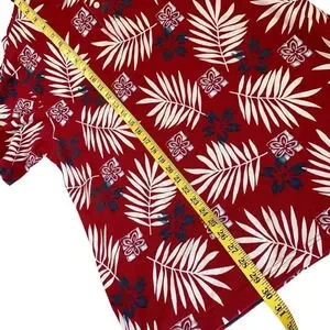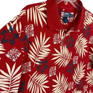 Ralph Lauren Chaps Vintage Hawaiian Short Sleeve Knit Polo Shirt XL Red Cotton