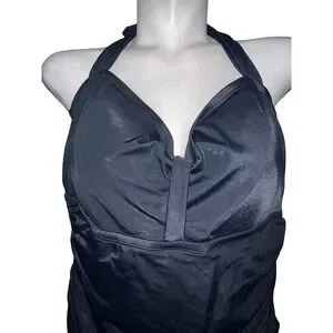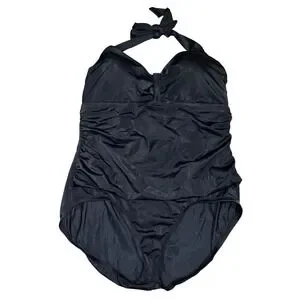 Jantzen Classics Womens Black Ruched One Piece Halter Swimsuit 22W JZSS5596 NEW