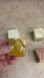 4 pistachio banded calcite cubes