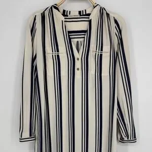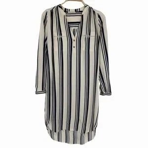 Ulla Johnson Striped Silk Blend Tunic Dress Size 2 Ivory Navy Boho Minimalist