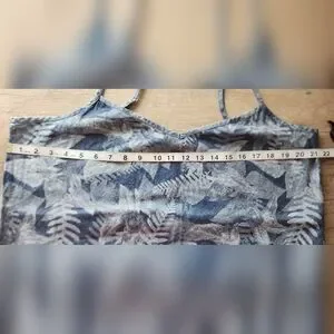 INC International Concepts women's XL, linen and lyocell blend, asymmetrical tank top in blue with leaves print, v-neck, and adjustable spaghetti straps in excellent condition. No stains, no rips, no snags, no pilling, and the straps adjusters are metal and in excellent condition. SKU0441